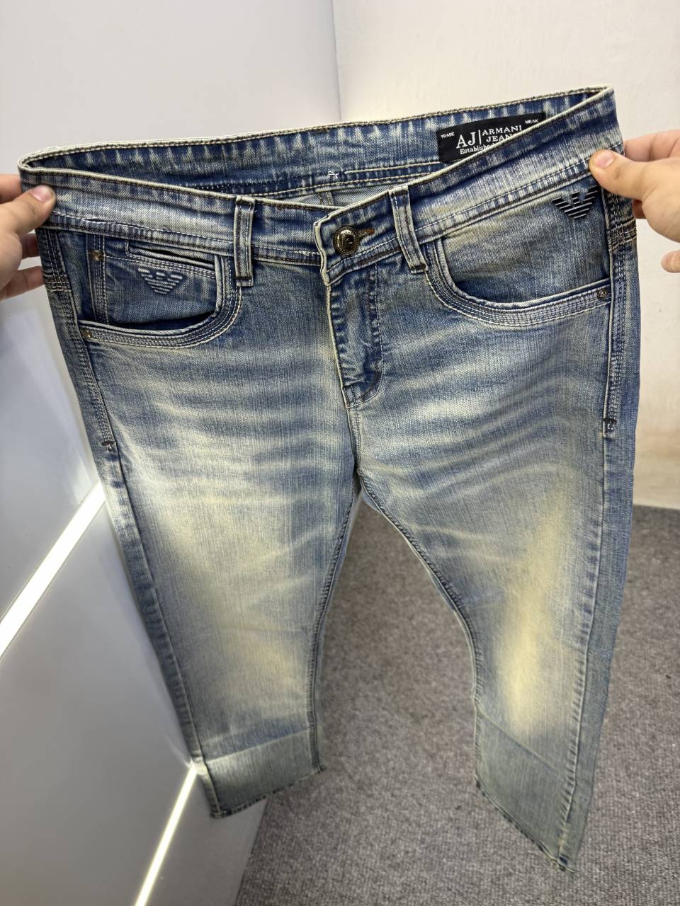 • EMPORIO ARMAN-I PREMIUM LIGHT BLUE DENIM JEANS STRAIGHT FIT LENGHT 41