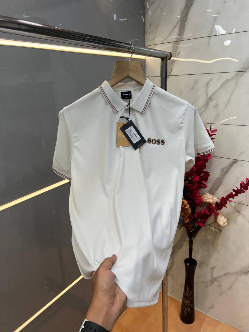 Hugo Bos s Premium Imported 240 GSM Interlock Lycra Fabric Polo Tshirt with Collar Design and Embroidered Logo 4003