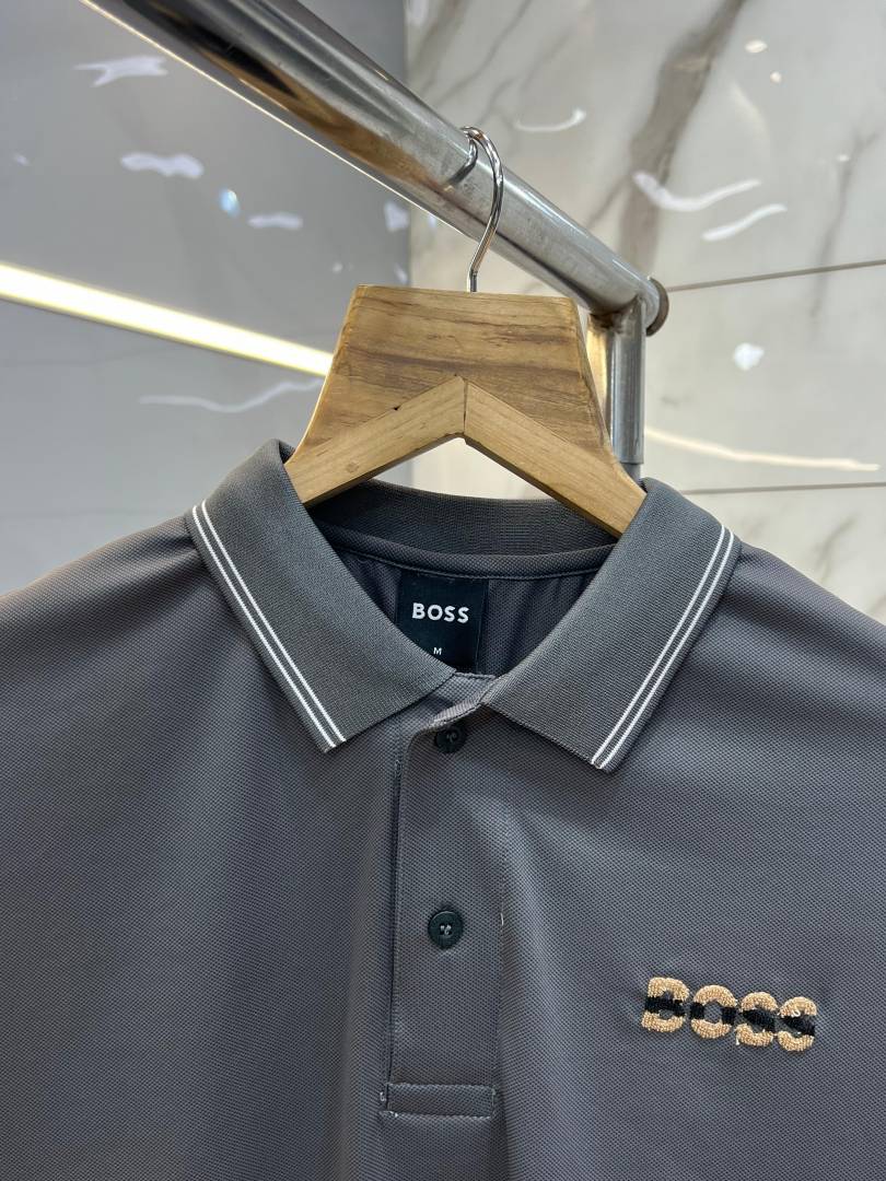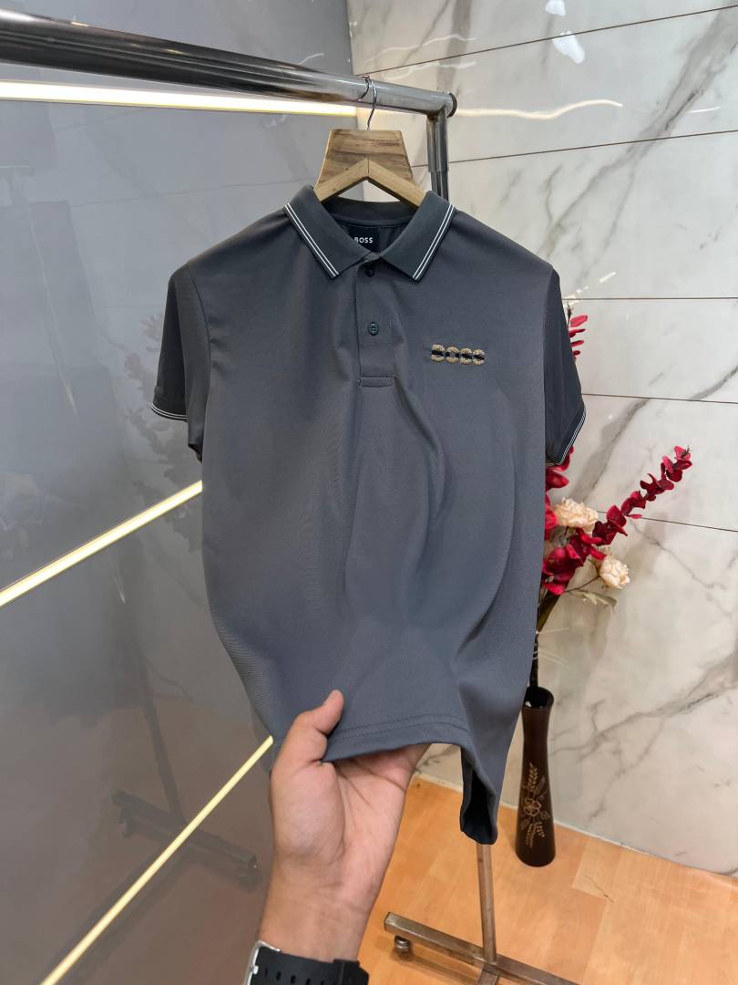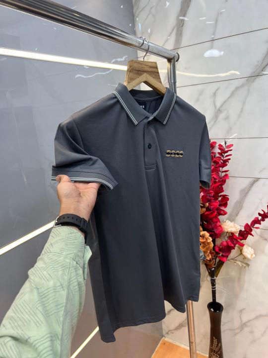Hugo Bos s Premium Imported 240 GSM Interlock Lycra Fabric Polo Tshirt with Collar Design and Embroidered Logo 4005