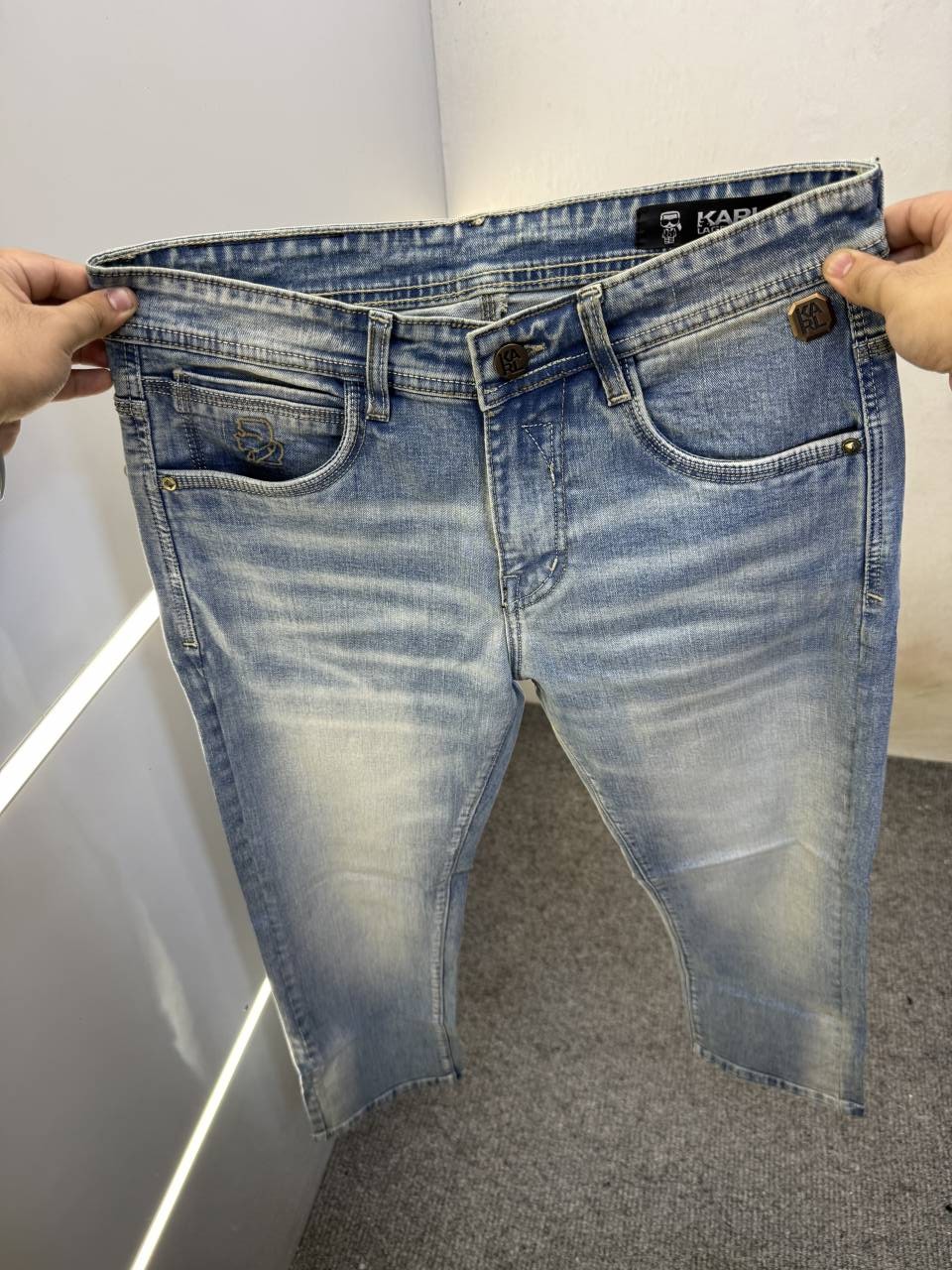 • KARL LAGERFELD PREMIUM LIGHT BLUE DENIM JEANS STRAIGHT FIT LENGHT 41