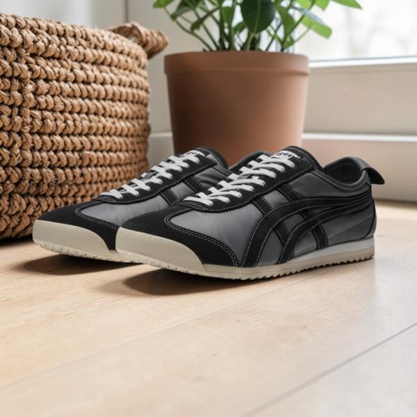 The Onitsuka Tiger Mexico 66 in "Graphite Grey" is a sleek, modern take on the heritage runner. Ditching the traditional bright whites and creams, this colorway embraces a dark, metallic "Graphite" charcoal tone. Often found in the SD (Super Deluxe) or GORE-TEX upgraded lineups, it is prized for its ability to hide wear and tear while maintaining a sharp, professional appearance that fits perfectly with the "Dark Academia" or tech-wear aesthetic.