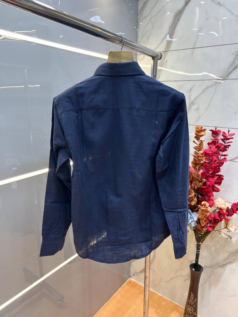 Ralp h Laure n Navy Premium Imported Self Design Shirt with Embroidered Logo and Poly Bag 4021